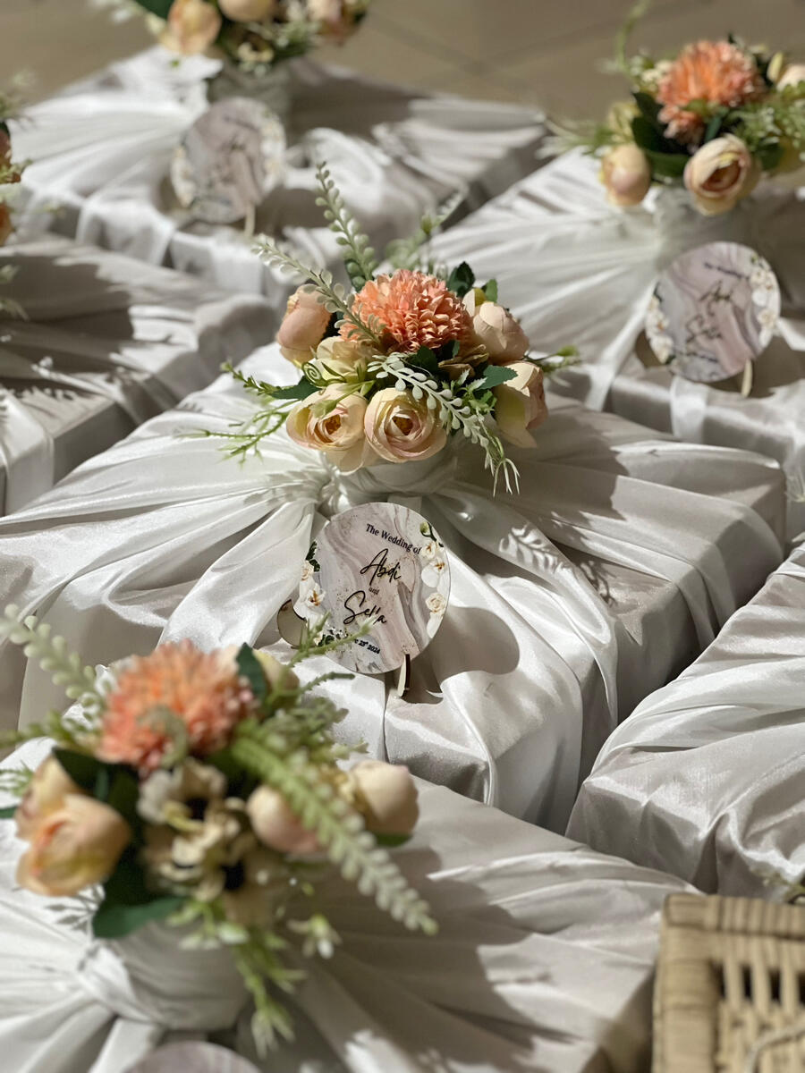 Silahkan list kebutuhan pernikahanmu dan konsultasikan dengan kami. Mulai dari konsep, desain undangan, souvenir, hantaran, hingga dekorasi.